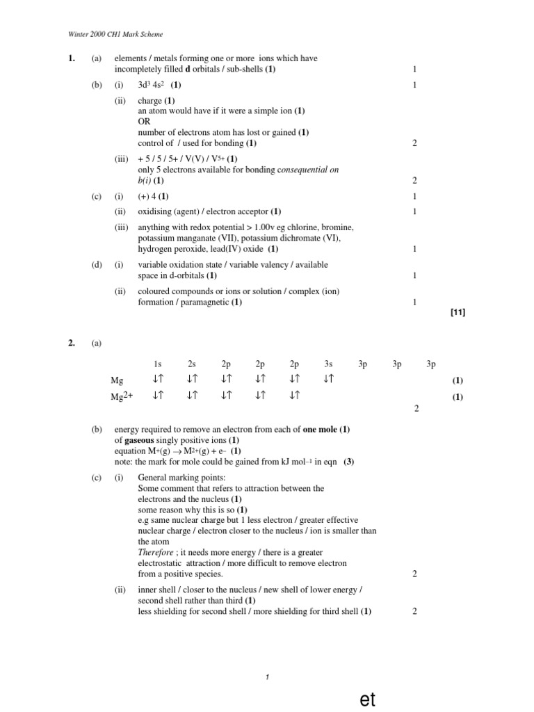 Comprehensive A Level Chemistry Mark Scheme Unit 6x A2 Externally Marked Resource