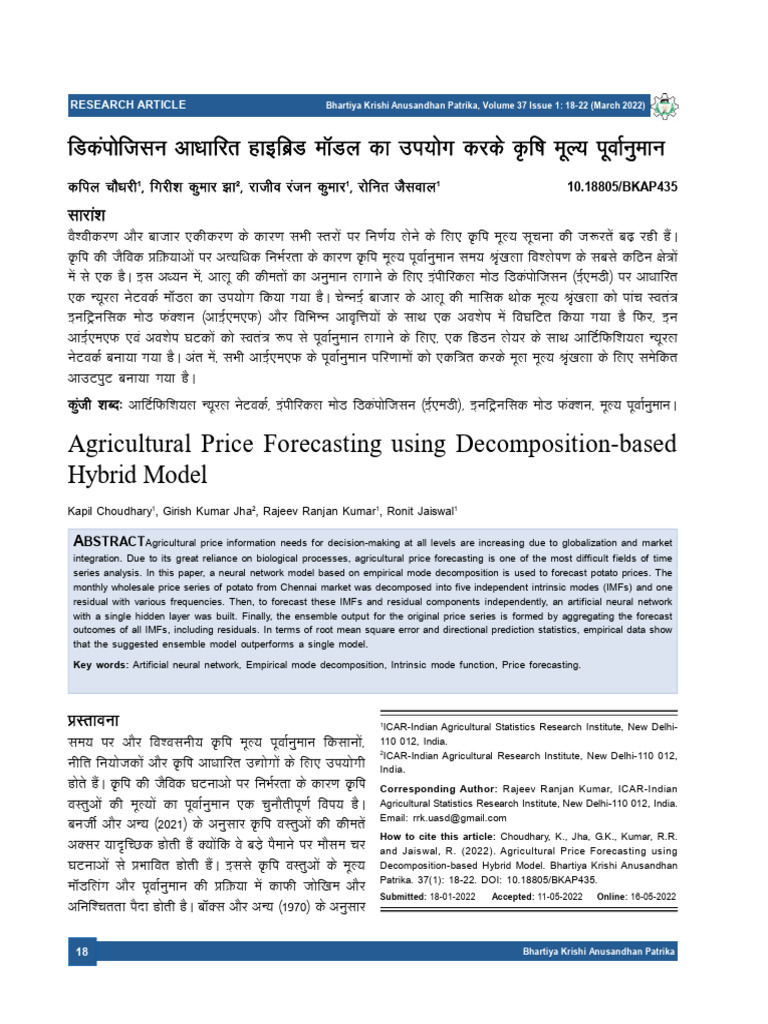 Our AI expert system uses your verification to refine future results for Agricultural Price Analysis And Forecasting.