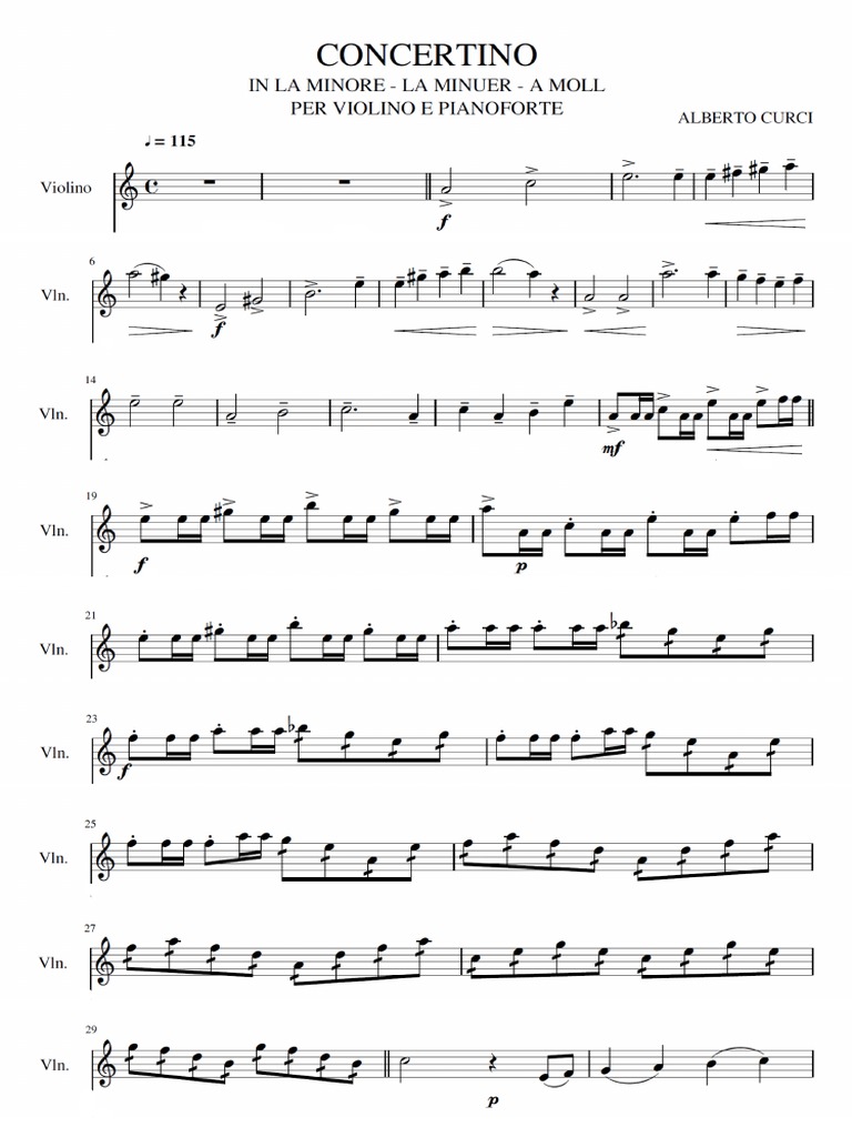 Alberto Curci Concertino Aminor Violin Sheets Detailed Analysis