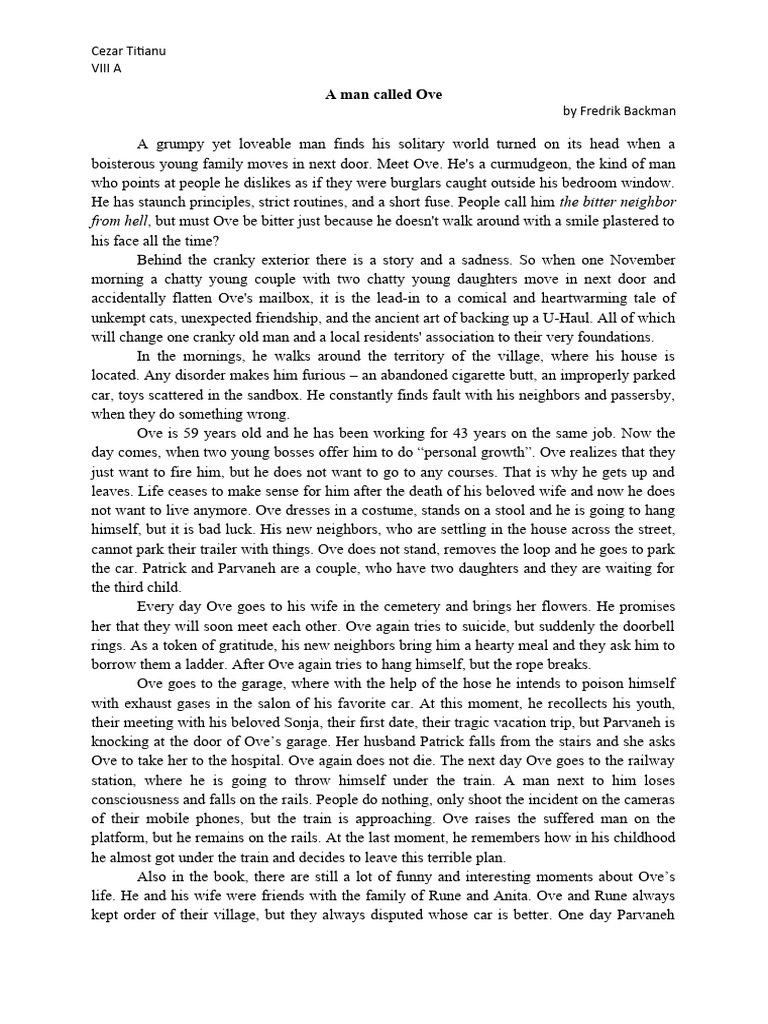 Aman Called Ove Anovel English And English Edition Detailed Analysis