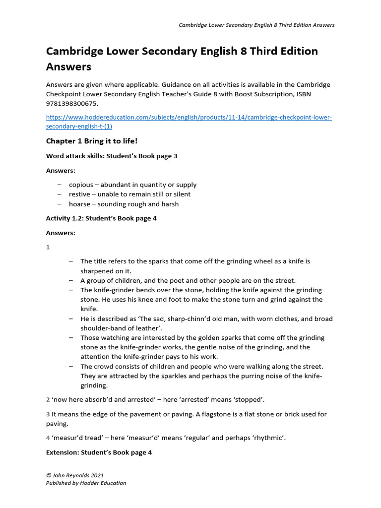 Comprehensive Answer Key For Ny Ready Ccls English Resource