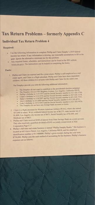 Appendix Individual Tax Return Problem 4 Complete Guide