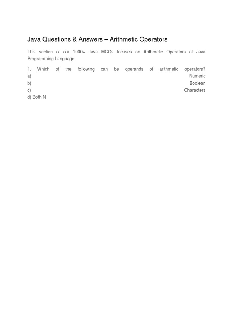 Authoritative overview of Arithmetic Operators Java Questions Answers Sanfoundry compiled from 2026 academic and industry sources.