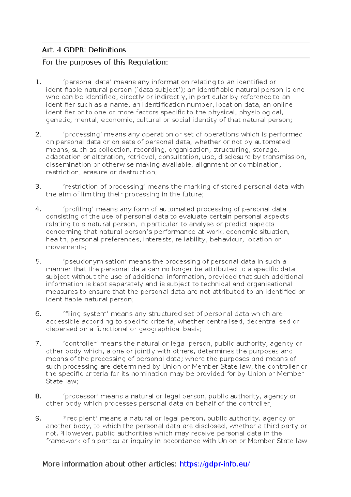 Art 4 Gdpr Definitions