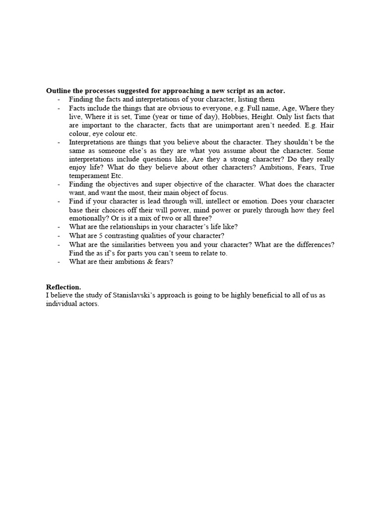 Comprehensive Building Acharacter Chapter Summary Stanislavski Resource