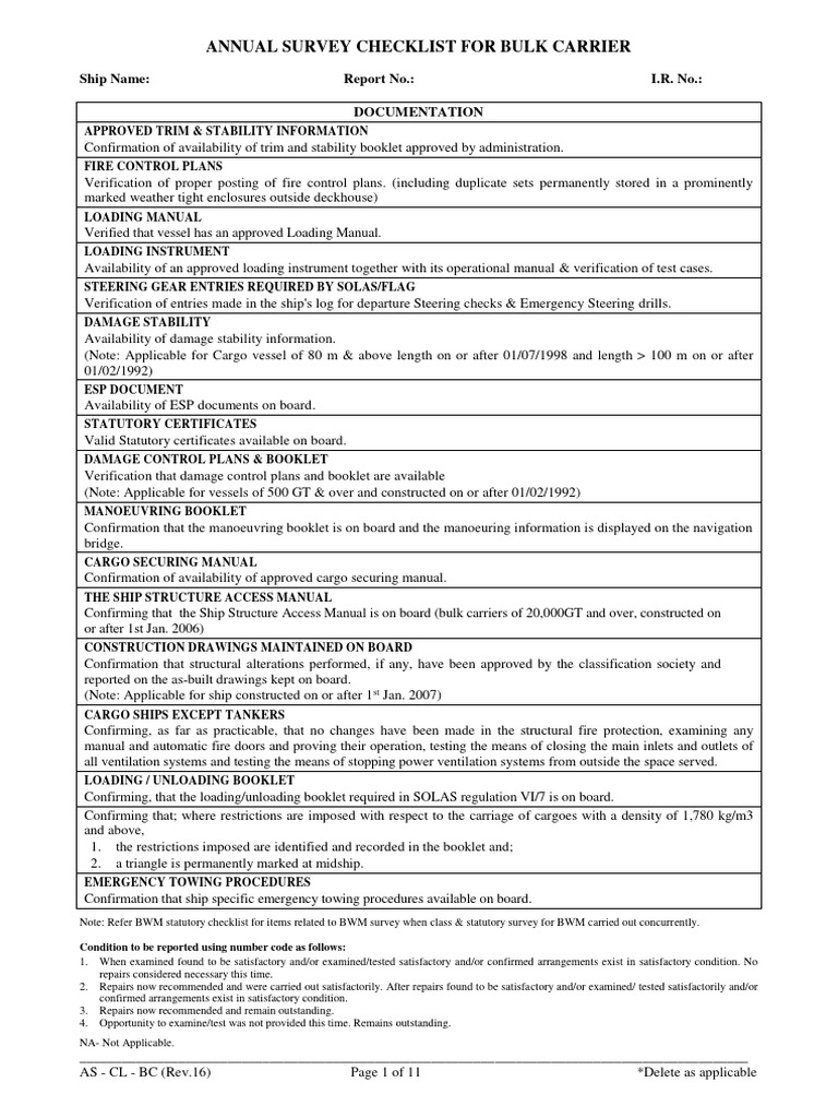 Bv Ship Annual Survey Checklist