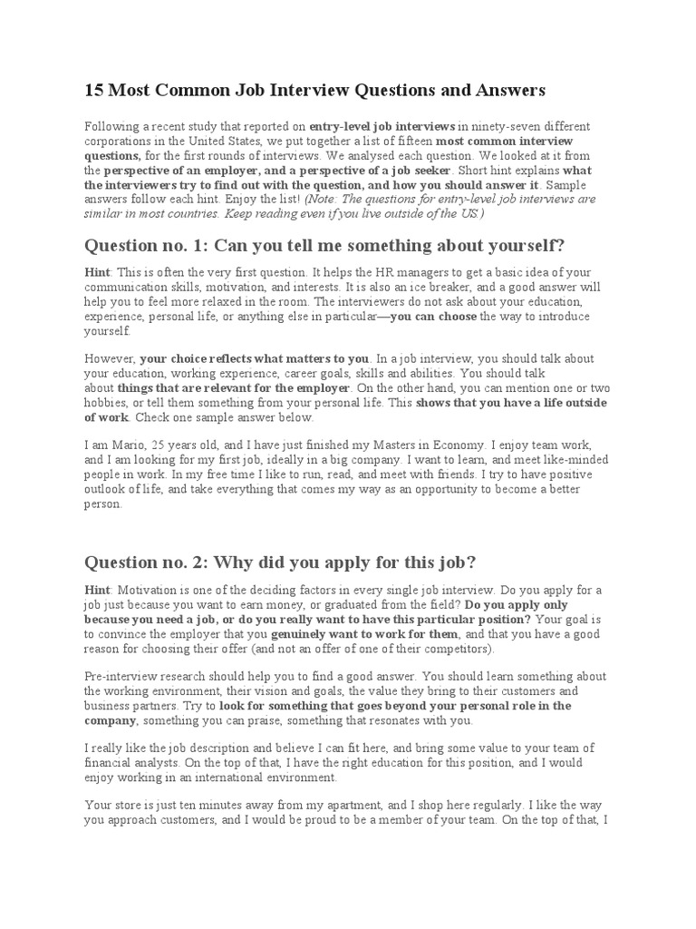 Common Job Interview Questions