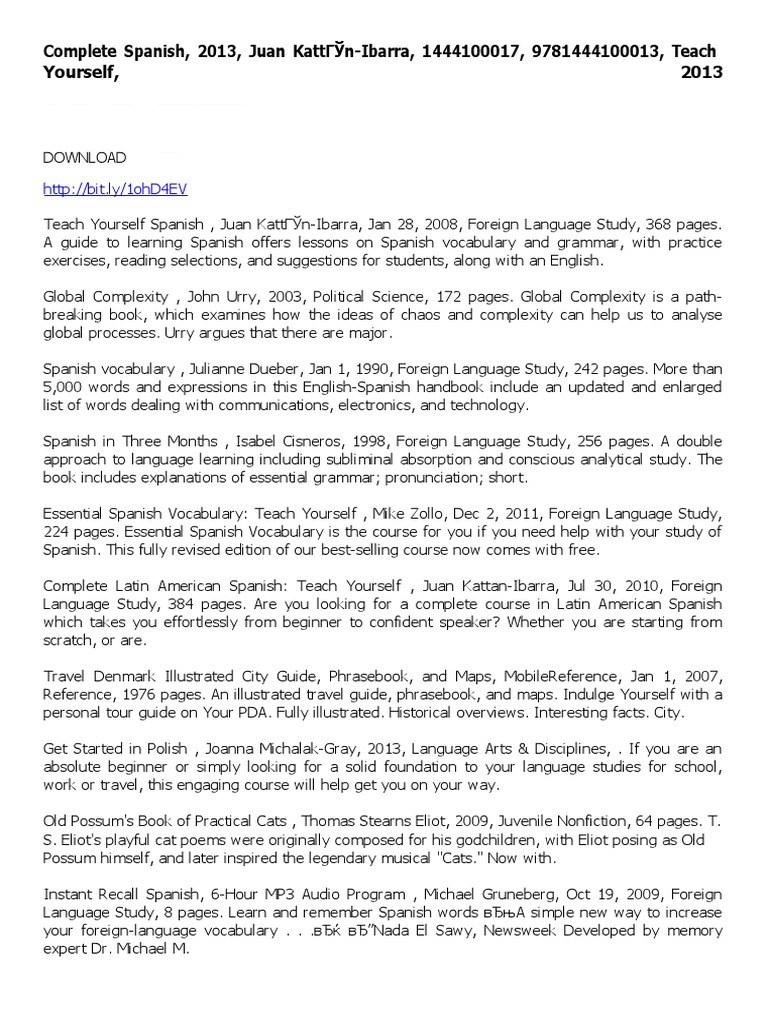 Deep analysis of Complete Spanish Learn Spanish With Teach Yourself Kattan Ibarra Juan. Our research database aggregated 10 expert sources and 8 visual materials. It is unified with 4 parallel concepts to provide full context.