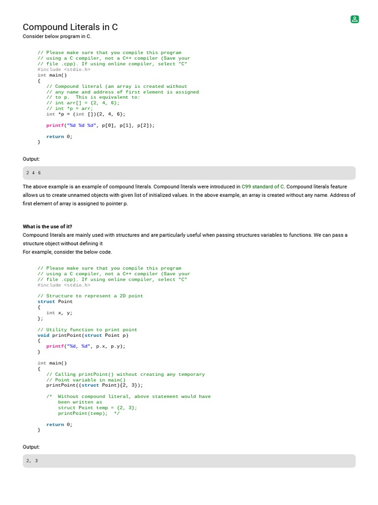 Our AI expert system uses your verification to refine future results for Compound Literals Since C99.