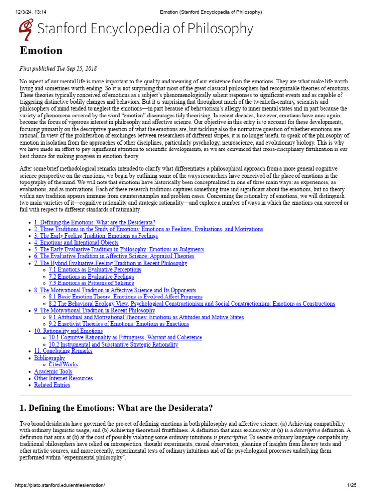 Emotion Stanford Encyclopedia Of Philosophy In-Depth Review