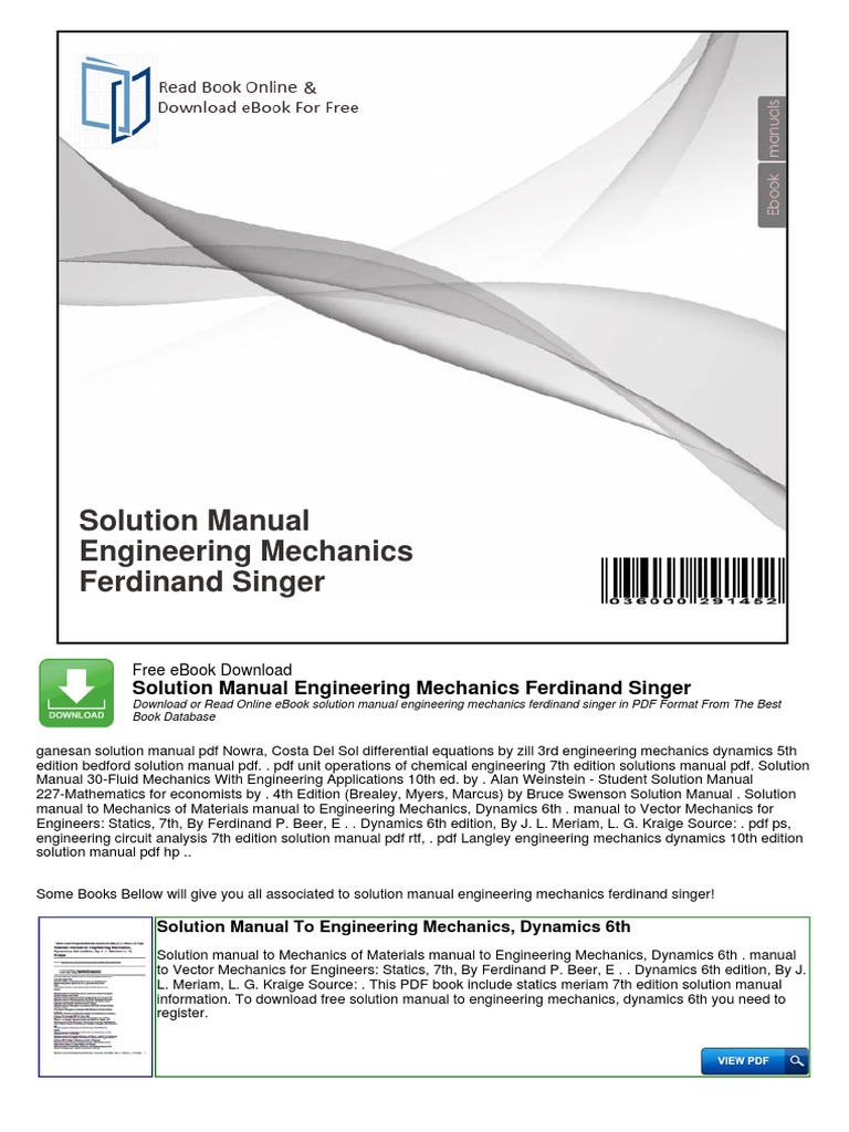Detailed intelligence on Engineering Mechanics By Ferdinand Singer Solution Manual Free Download. Synthesis of 10 verified sources complemented by 8 graphic references. It is unified with 8 parallel concepts to provide full context.