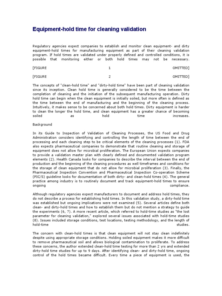 Equipment Hold Time For Cleaning Validation