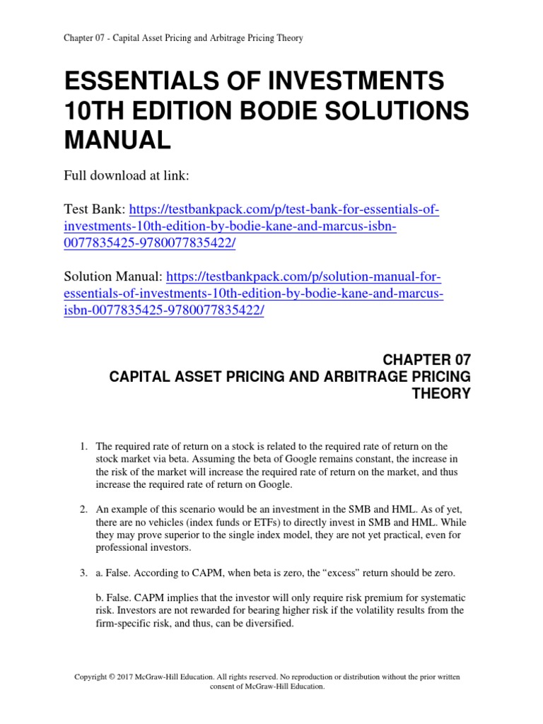 Essentials Of Investments 9th Edition Solutions Manual Expert Insights