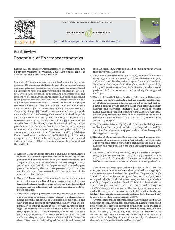 Essentials Of Pharmacoeconomics Overview and Information