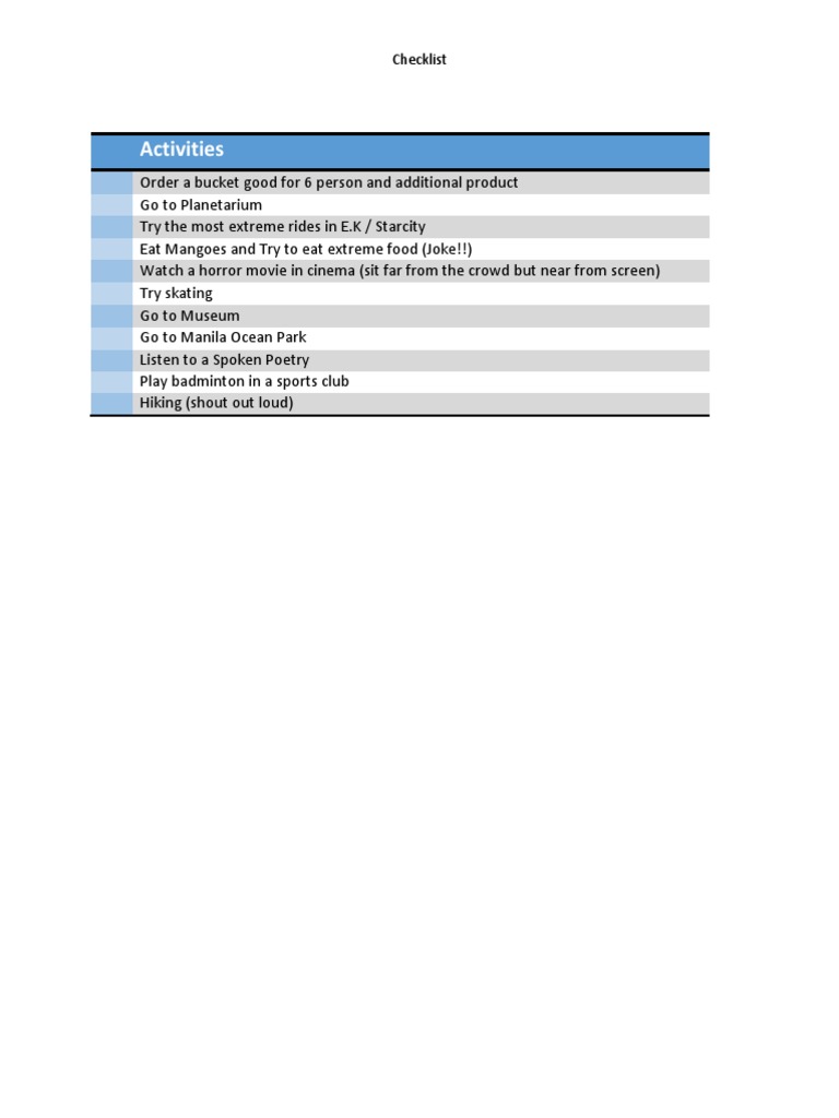 Examples Of Activities