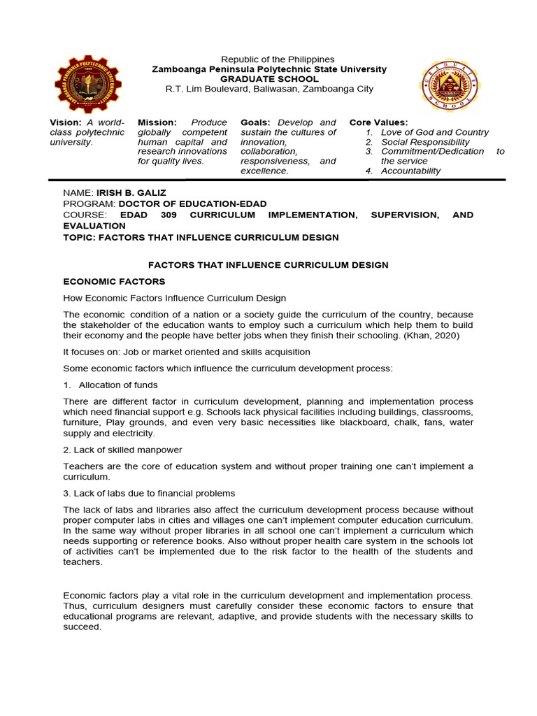 Factors That Influence Curriculum Design