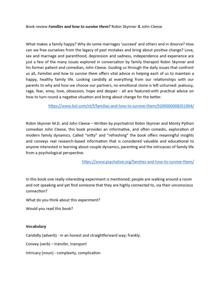 Families And How To Survive Them Cedar S Detailed Analysis