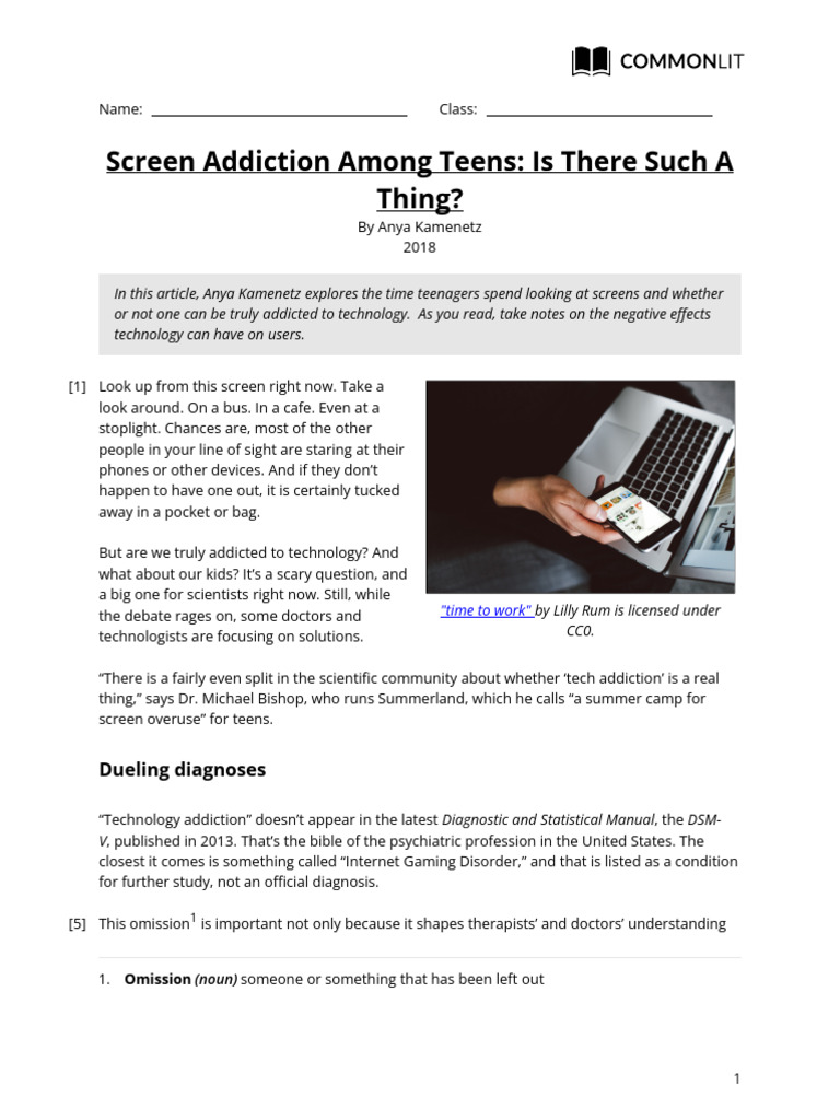 Free Commonlit Assignment Screen Addiction Among Complete Guide