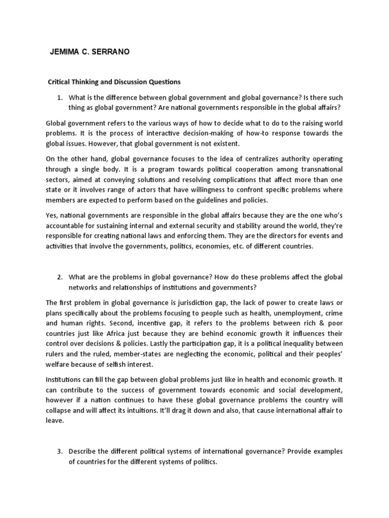 Globalization Institutions And Governance Detailed Analysis