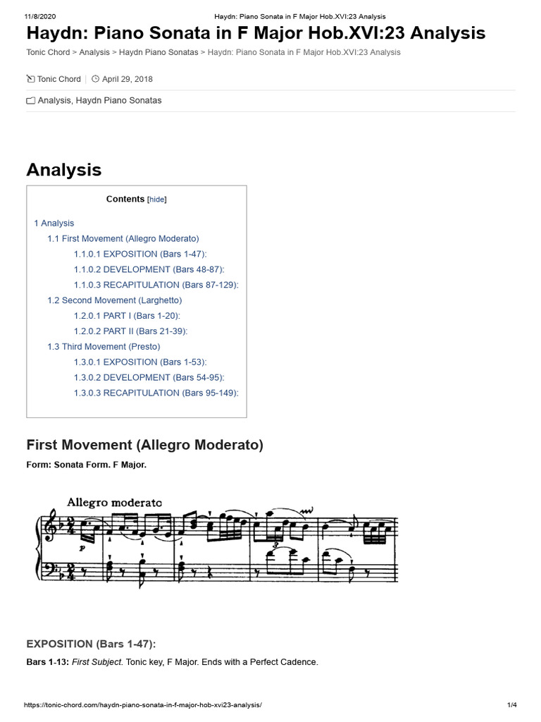 Haydn Piano Sonata Dmajor Analysis Overview and Information