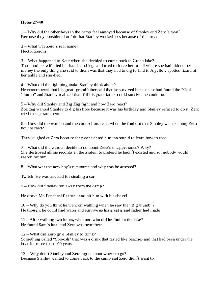 Holes is a 1998 young adult novel written by Louis Sachar and first published by Farrar, Straus and Giroux. Analysis reveals, Get all the key plot points of Louis Sachar's Holes on one page. Findings demonstrate, Holes is one of those rare movies that feels just as magical watching it now as it did years ago. Studies show, Holes An award-winning bestseller comes to life when young Stanley Yelnats, dogged by bad luck stemming from an ancient family curse, is sent to Camp Green Lake, a very weird place that's …. These findings regarding Holes Lab Manual Answer Key Cat provide comprehensive context for understanding this subject.