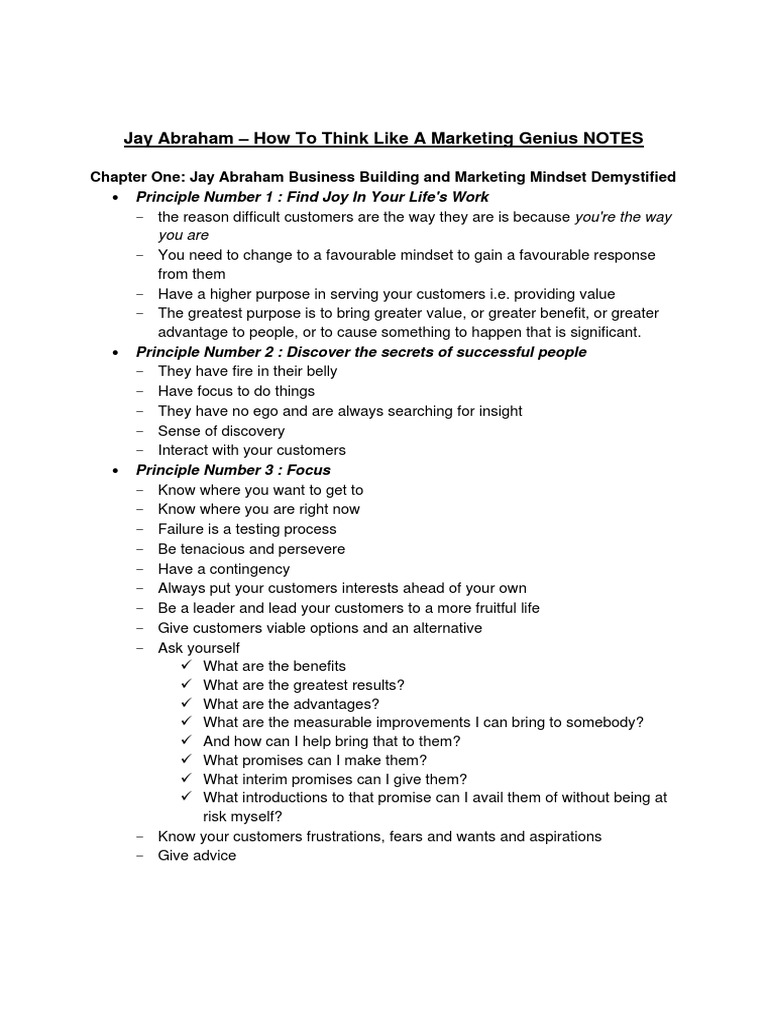 Jay Abraham How To Think Like Amarketing Genius Notes Detailed Analysis