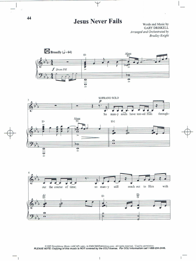Strategic insights into Jesus Never Fails Sheet Music. Research network analyzed 10 authoritative sources and 8 graphic elements. It is unified with 9 parallel concepts to provide full context.
