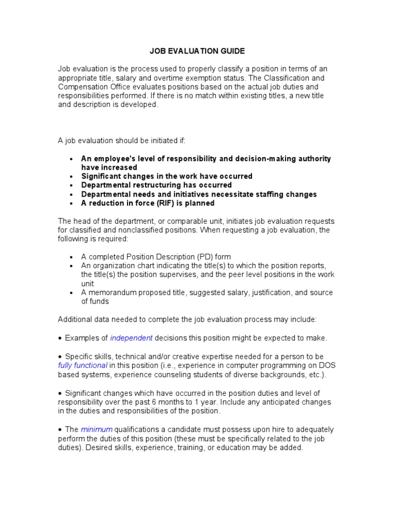 Job Evaluation Guide Overview and Information