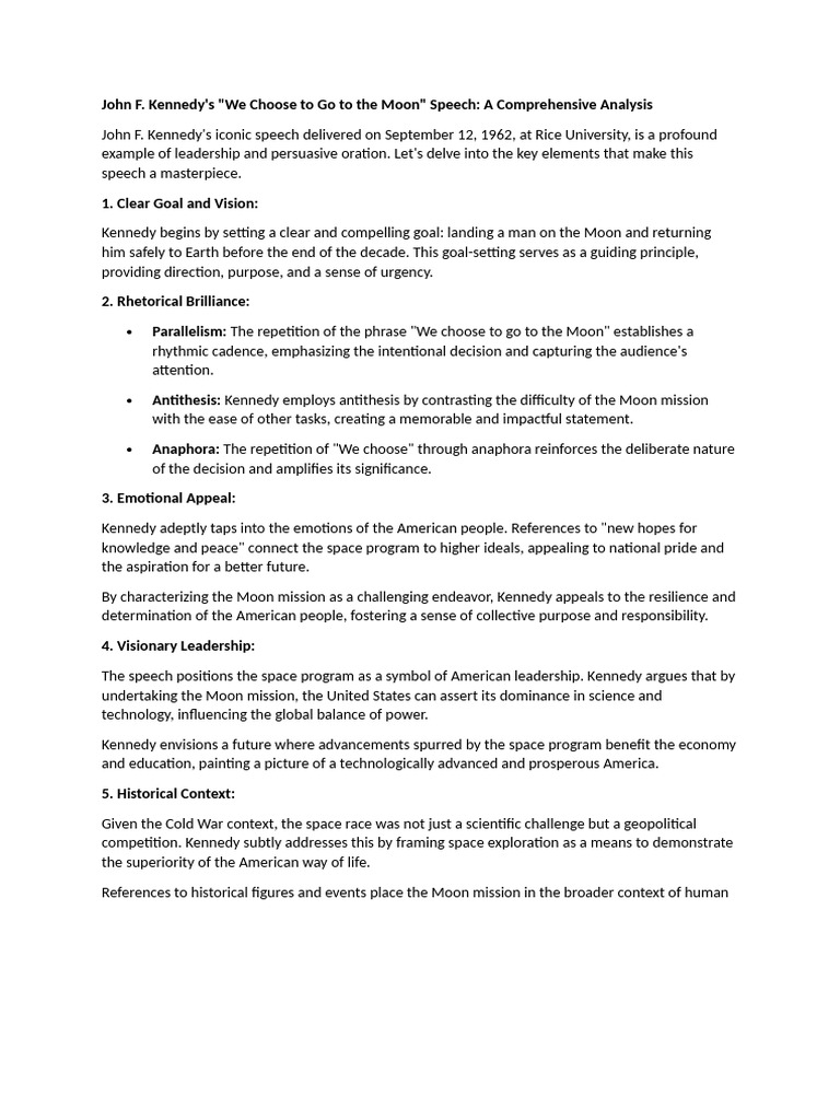 John F Kennedy Speech Detailed Analysis