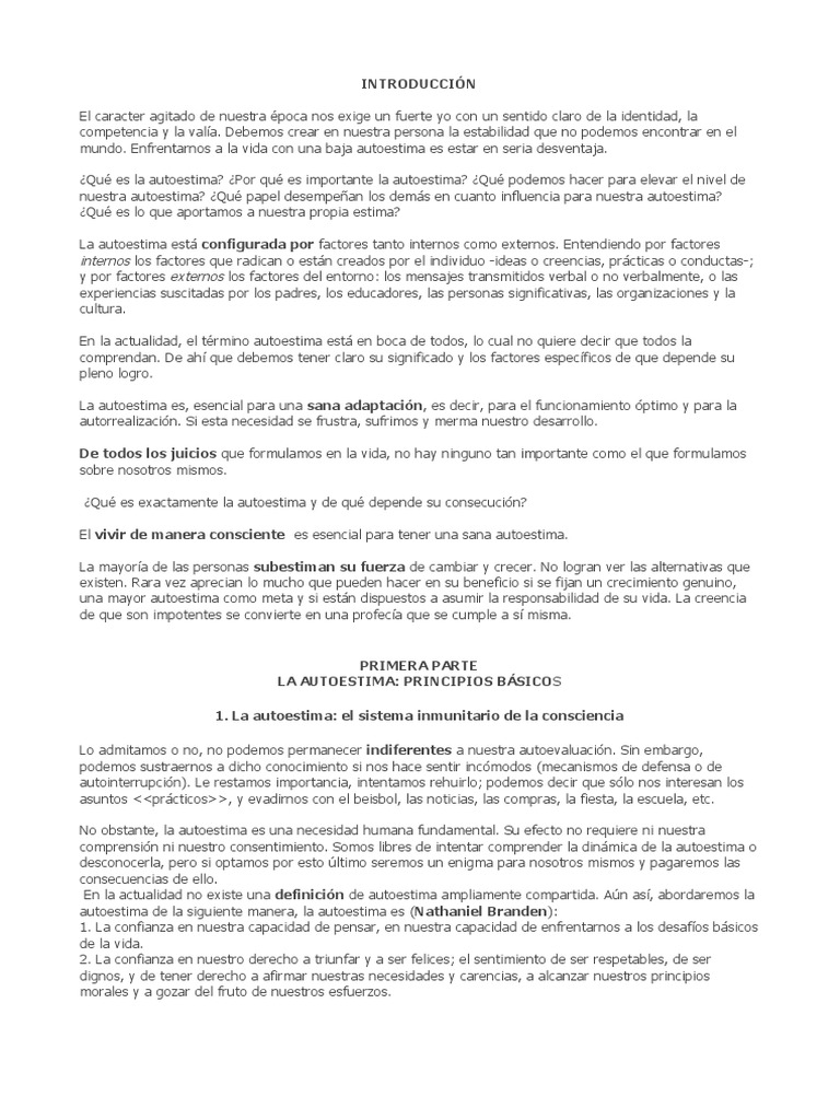 Los Seis Pilares De La Autoestima El Libro Defini