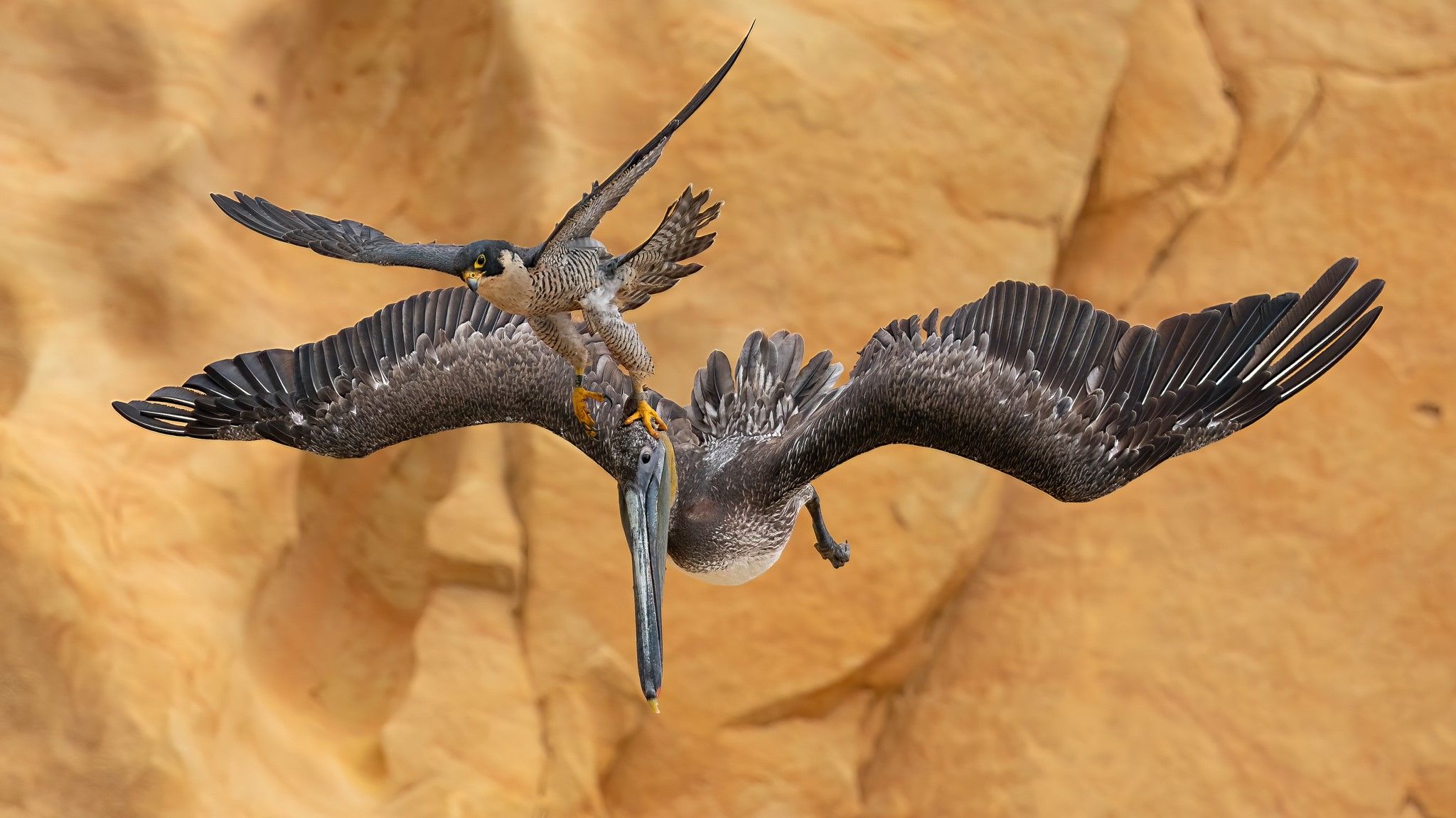 About Moment Falcon Digs Its Talons Into Pelican S Head To Protect Its Nest Captured In Incredible Photo