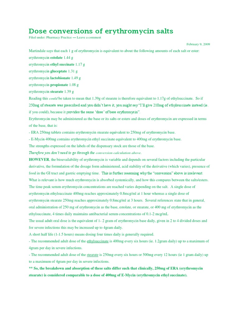 Everything About Need Oral Administration Dose Calc Help Em Erythromycin By Api