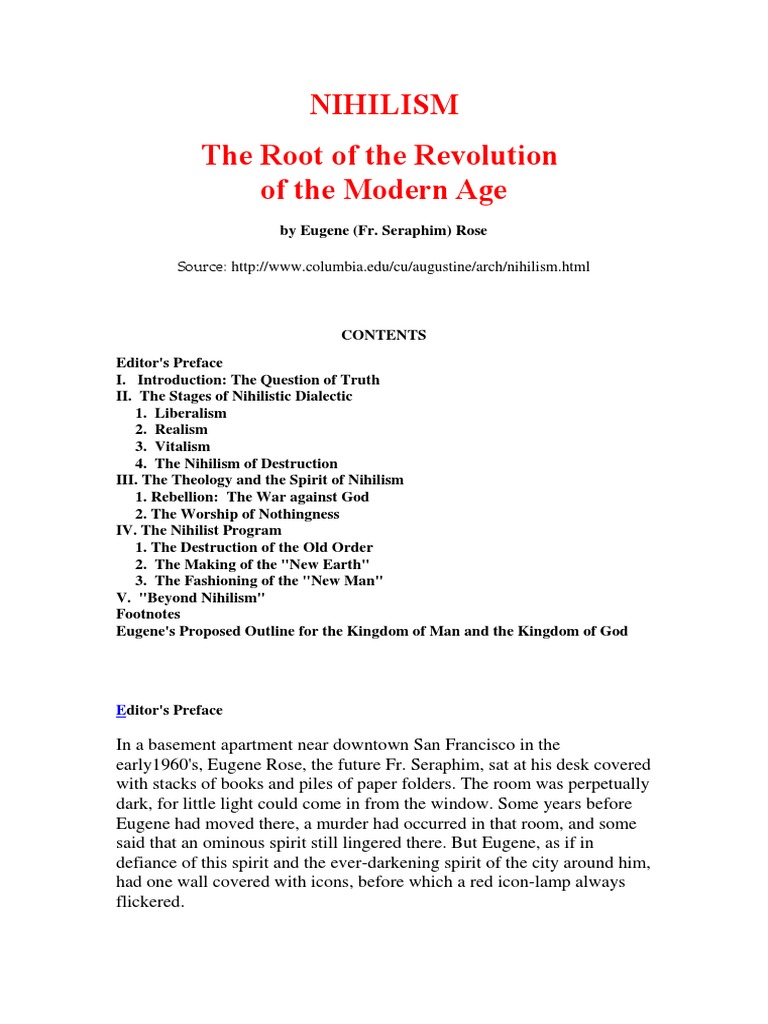 Authoritative overview of Nihilism The Root Of Revolution Modern Age Seraphim Rose compiled from 2026 academic and industry sources.