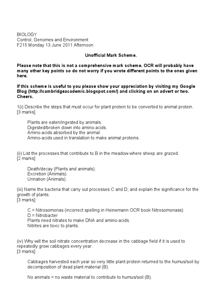 Ocr F322 June 2014 Unofficial Mark Scheme Complete Guide