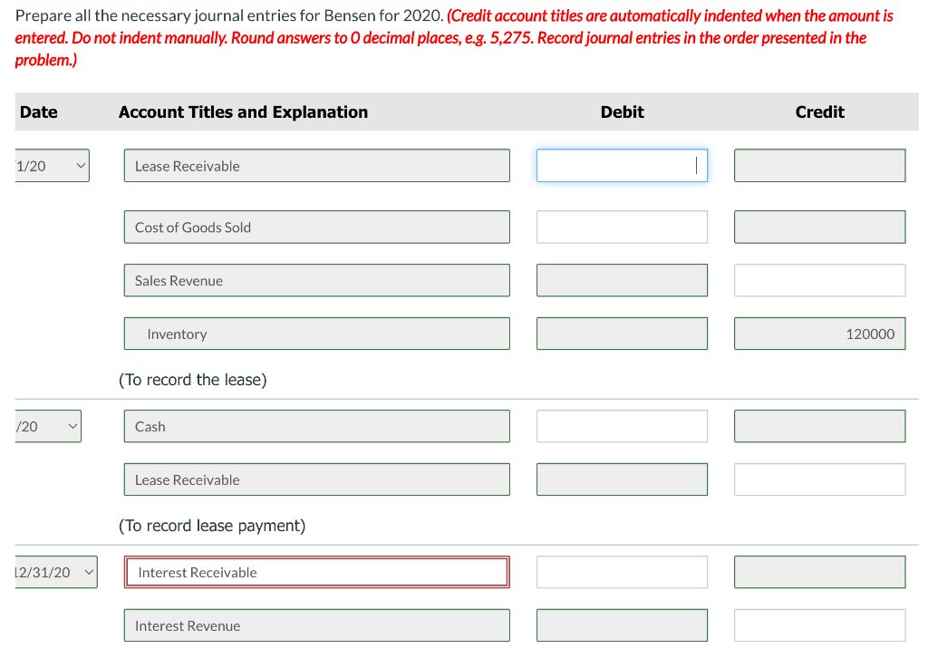 Solved On January 1 2020 Bensen Company Leased Equipment Detailed Analysis