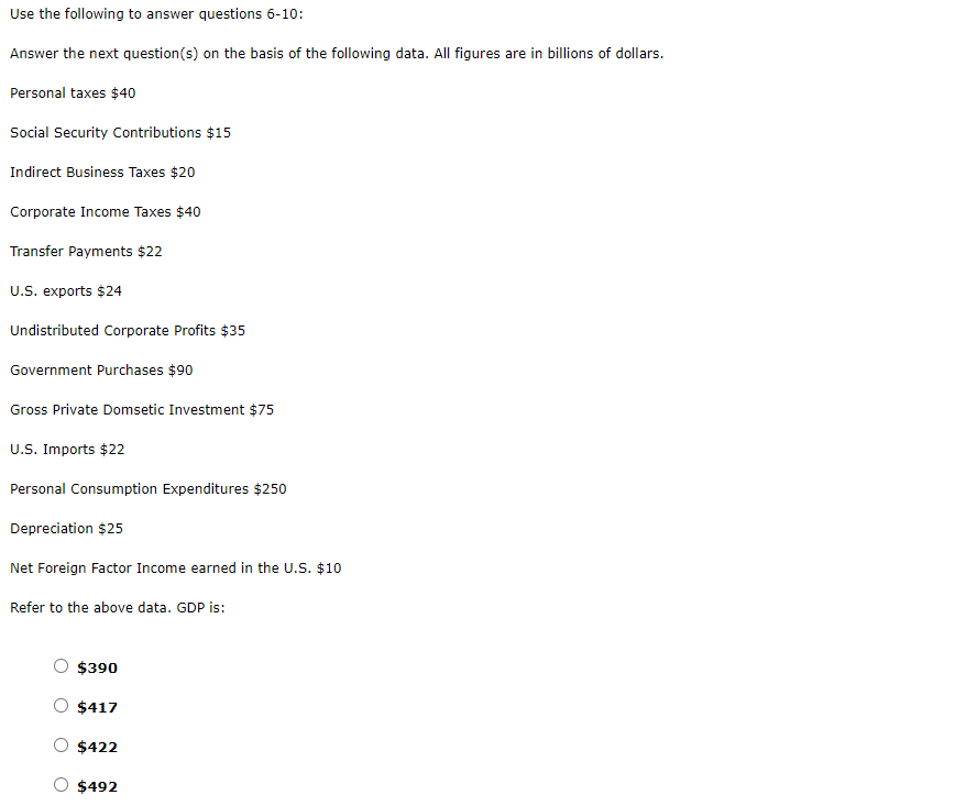 Solved Use The Following To Answer Questions 6 10 Answer