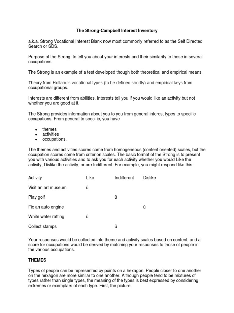 Comprehensive Strong Campbell Interest Inventory Test Resource
