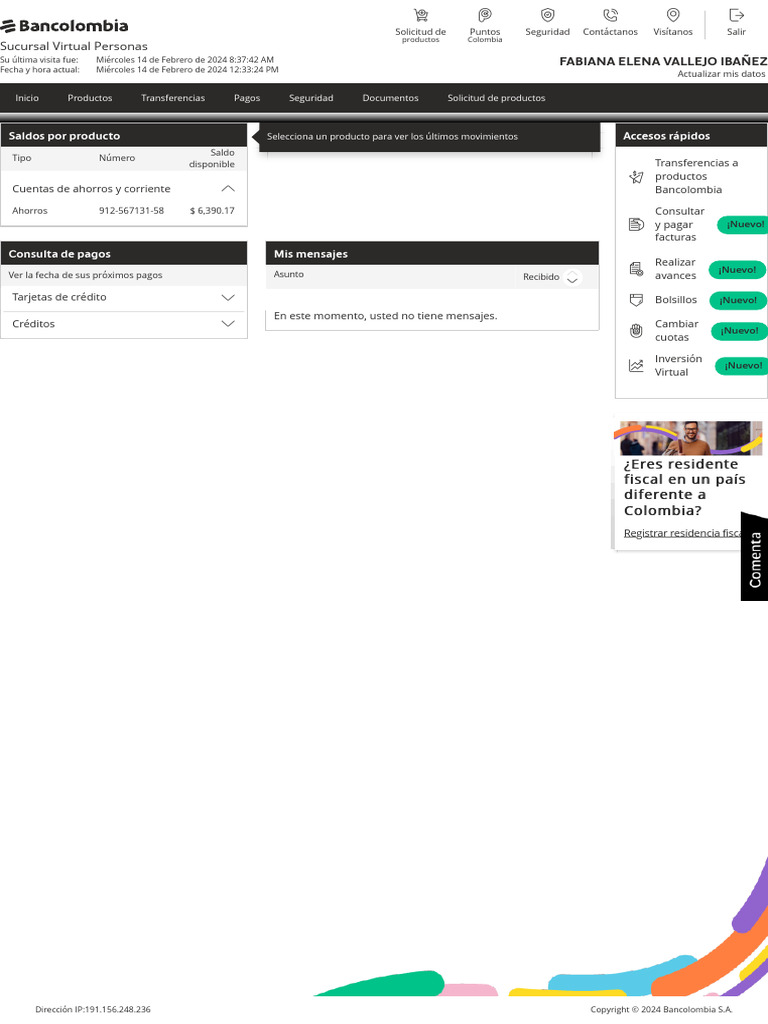 Cómo pagar productos Bancolombia en la Sucursal Virtual Personas