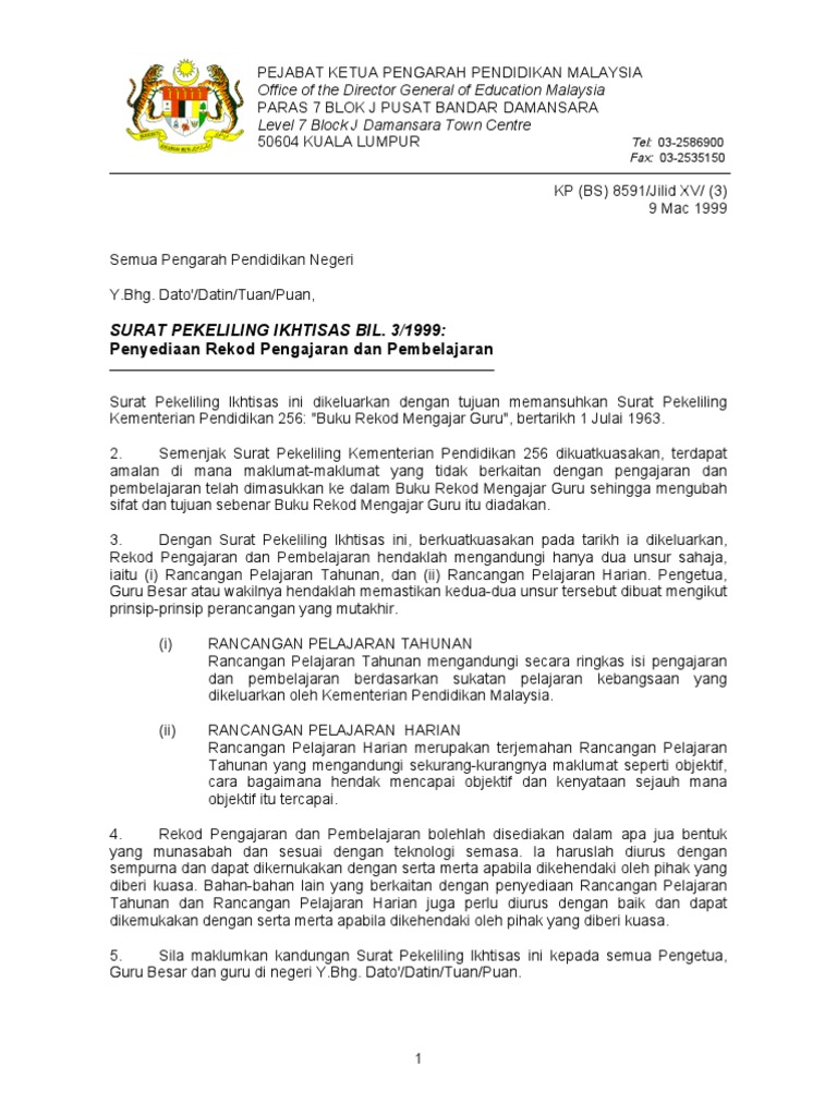 Surat Pekeliling Ikhtisas Bil 3 1999 Penyediaan Rekod