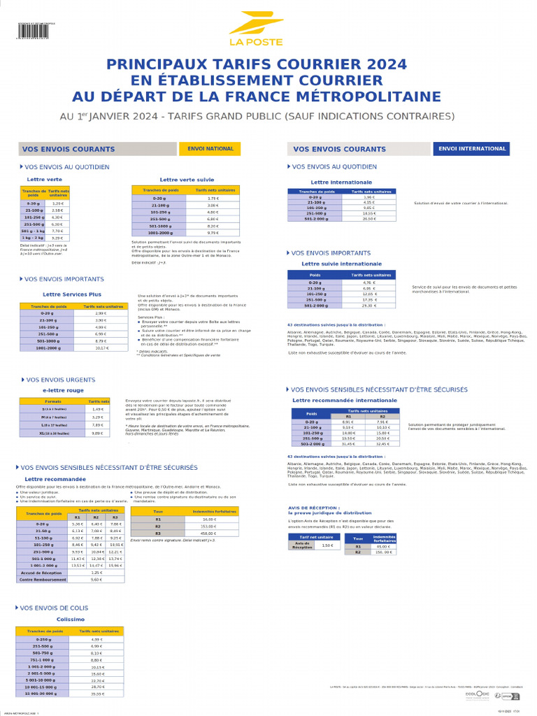 Tarifs Postaux 2025 2026