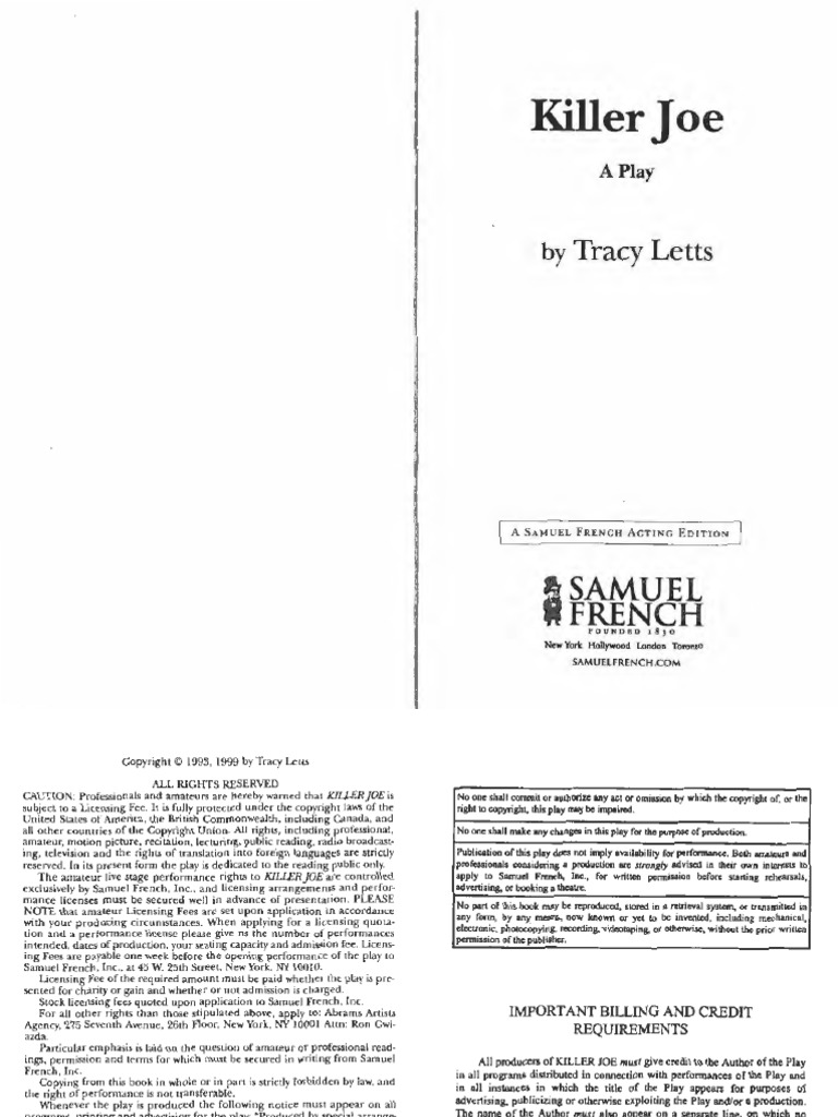 Comprehensive Tracy Letts Killer Joe Play Resource