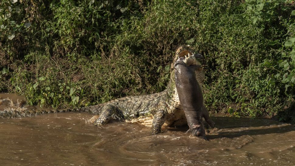 About Watch Rare Footage Of Huge Crocodile Eating Baby Hippo With Umbilical Cord Still Attached