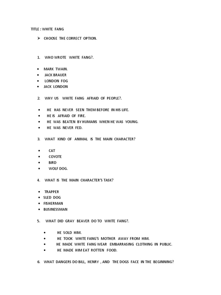White Fang Study Guide Questions Mrs Hall Complete Guide